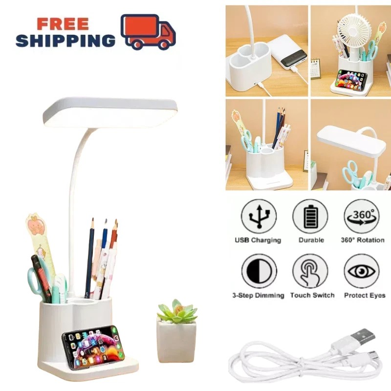 LED Desk Light Touch Sensor Table Bedside Reading Lamp USB Rechargeable Dimmable