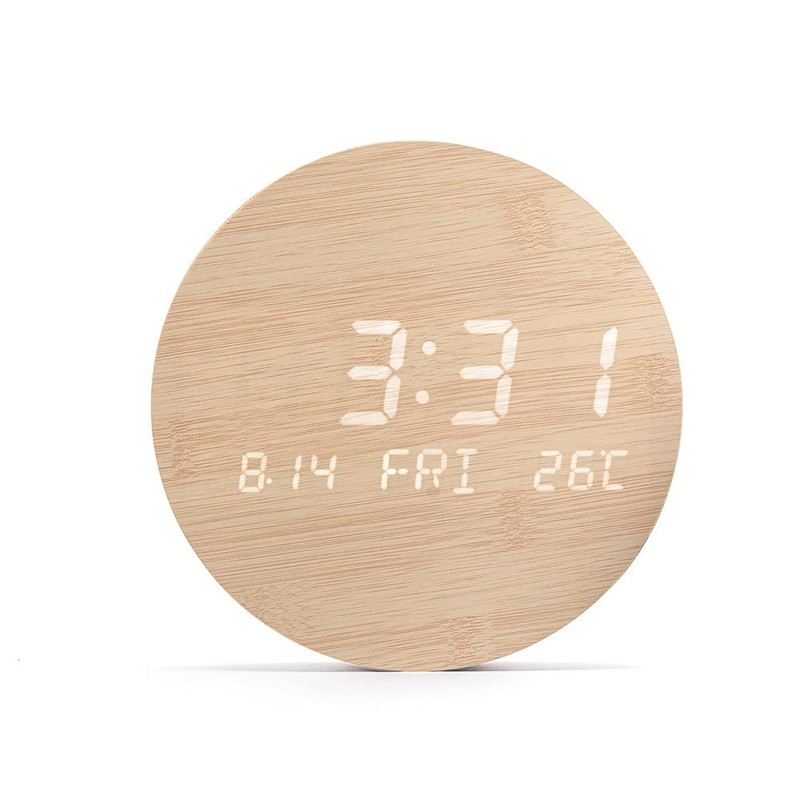 LED Digital Wall Clock Digital AC Color LCD Wireless Wood