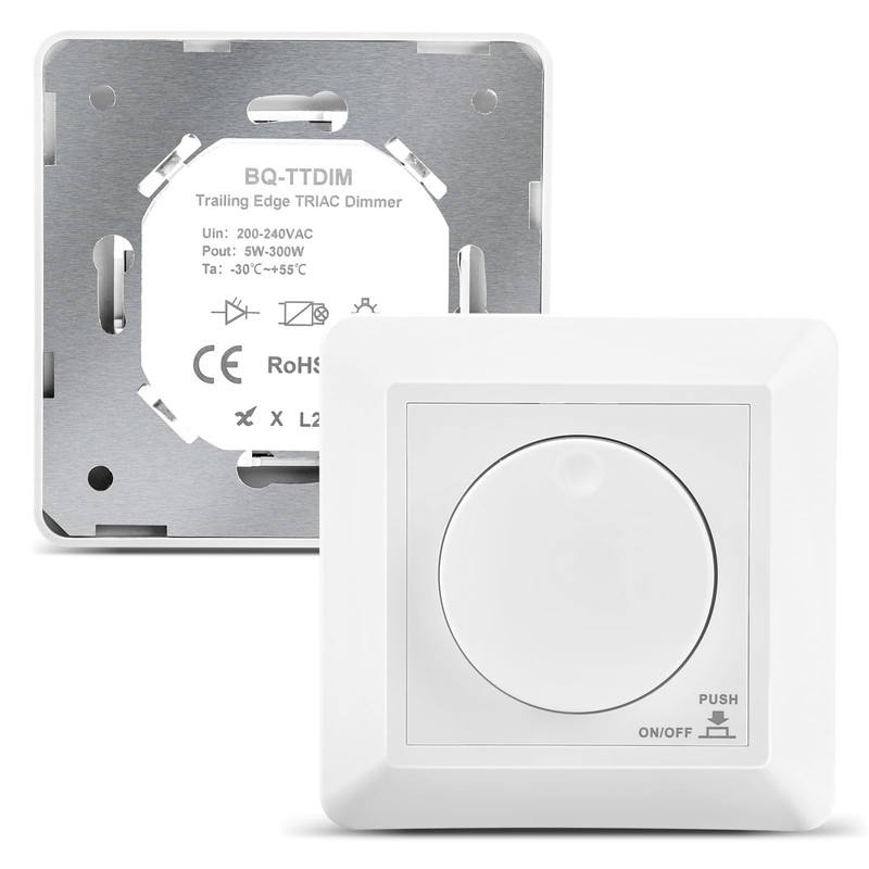 LED Dimmer, 5-300 W LED Dimmer Switch, Flush-Mounted Dimmer Switch for Monochrome LED Lamps, Incandescent Bulbs and Halogen Bulbs, 220-240 V