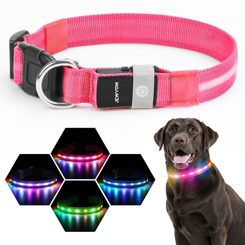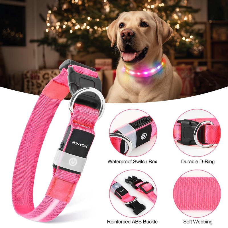 LED Dog Collar, Light Up Dog Collar, USB Rechargeable - Brightest Dog Lights for Night Walking, 6 Light Modes, Adjustable for Dog Safety(Large, Candy Pink)