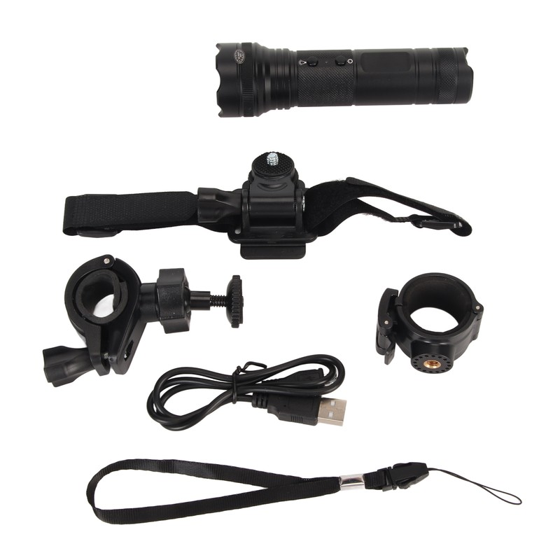 1、[Widely Applicable] The flashlight camera comes with mounting accessories that provide a variety of fixing methods, and can be tied to the helmet or fixed to the bike. 2、[Wide Viewing Angle And Multi Lighting Modes] This flashlight action camera offers 1080P HD video, 120 degree wide angle shooting, large shooting area. And there are 5 lighting modes. 3、[Waterproof] This flashlight recorder is made of premium aluminum alloy, sturdy and durable. Waterproof design, more suitable for extreme outdoor adventure. 4、[Rechargeable And Storage Expansion] Micro USB rechargeable flashlight video recorder with built in 2600mah battery. Memory card supports up to 256GB to meet most daily shooting needs. 5、[Multi Application] This LED flashlight camera has a wide range of use for outdoor sports, camping, outdoor cycling, etc, allowing you to shoot anywhere, anytime.