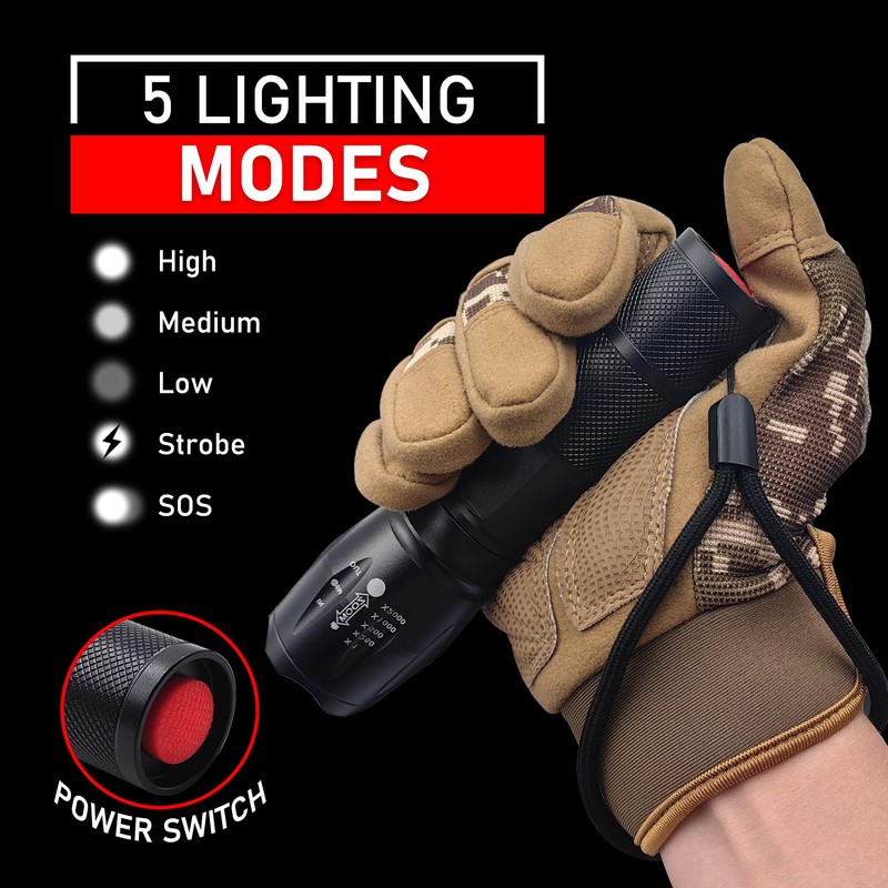 LED Flashlights - High Lumen Mini Tactical Flashlights with 5 Modes, Zoomable Beam, Water-Resistant Design for Camping, Outdoor, and Home Use (4)