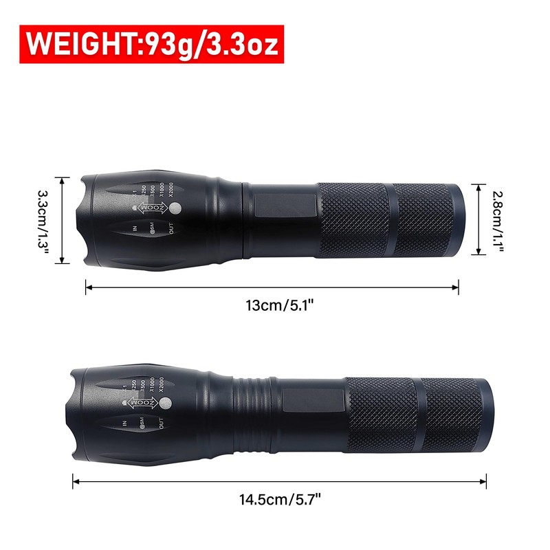 - Military-Grade Design: Built from military-grade aluminum, this tactical flashlight is virtually indestructible. Water-resistant and shockproof, it can survive a 10-foot drop and perform reliably in harsh environments, making it ideal for outdoor adventures and training exercises.