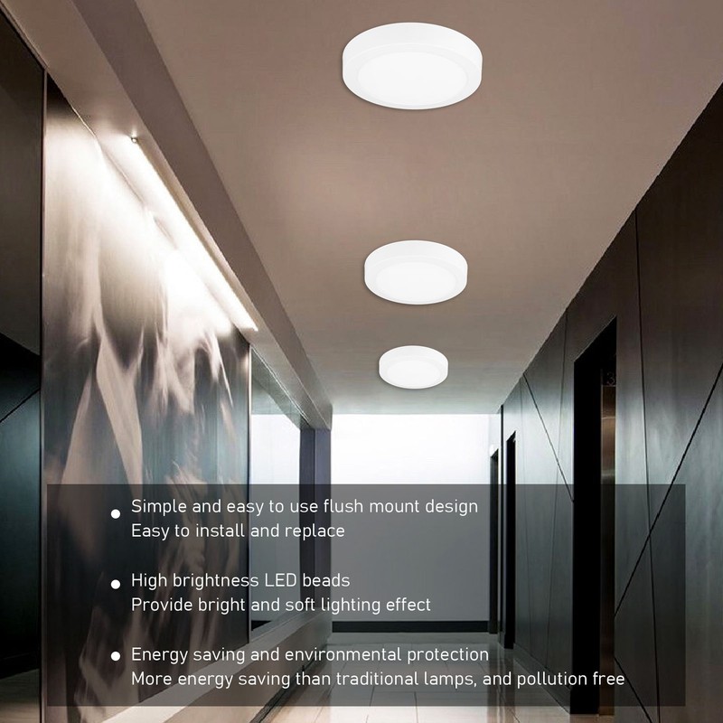 1、HIGH BRIGHTNESS LED BEADS: LED flush mount ceiling light utilizes high brightness LED beads to provide bright and soft illumination. 2、ENERGY SAVING: LED disk light utilizes energy efficient LED technology, which is more energy efficient than traditional fixtures and is pollution free. 3、ULTRA SLIM DESIGN: LED ceiling light features an ultra thin design that is suitable for installation in a variety of locations and does not take up much space. 4、FLUSH MOUNTING METHOD: Round flat ceiling light features an easy to use flush mounted design for convenient installation and replacement. 5、SCOPE OF APPLICATION: Round flat panel ceiling light is suitable for ceiling lighting in aisles, corridors, balconies and many other places.