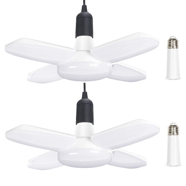 LED Garage Light 60W E26 LED Garage Ceiling Lights Deformable 6500K 6000LM Daylight White Garage LED Light with 4 Adjustable LED Panels, LED Shop Lights for Warehouse Workshop Basement Lights (2 PACK)