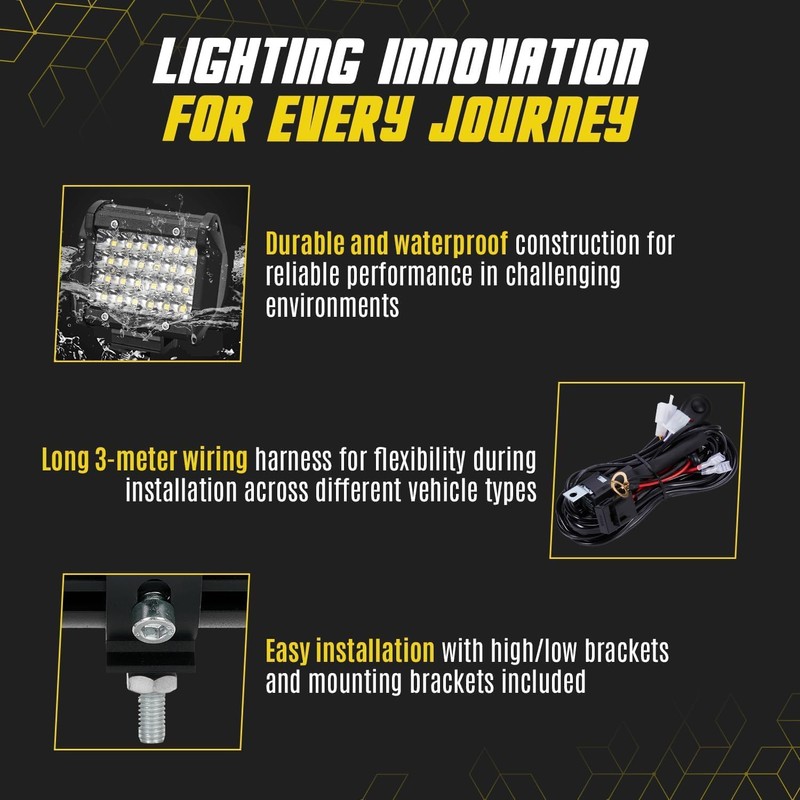 - ✅LIGHTBOSS Support -- If you have any questions when using our led fog lights, please feel free to contact us and we will do our best to serve you! The package including: (2)pcs 30 inch 180W slim LED light bar with spot & flood combo beam; (4)pcs 4 inch LED light pods with spot light; (2)pcs 3 meter switch harness kits, and mounting brackets.