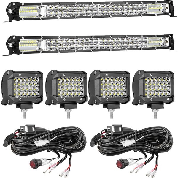 LED Light Bar Kit, (2) 30inch Double Row LED Bar with Flood Spot Combo Beam, (4) 4inch Light Pods, (2) Wiring Harness, 12V 24V Off Road Driving Lamps for Truck ATV SUV RV Tractor