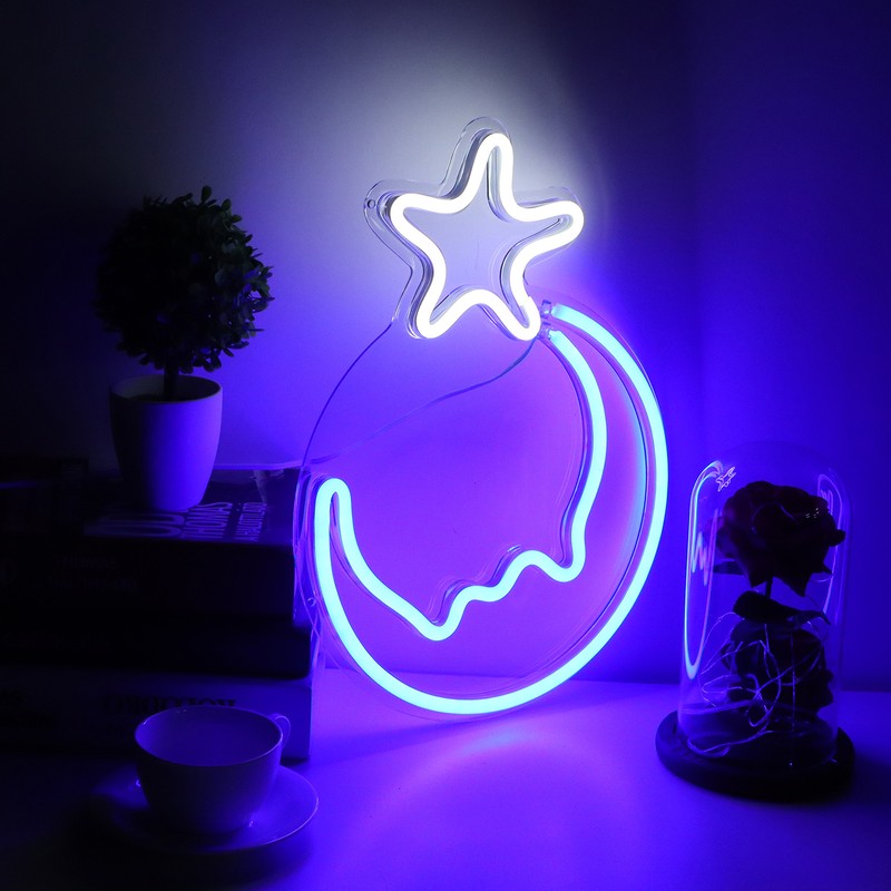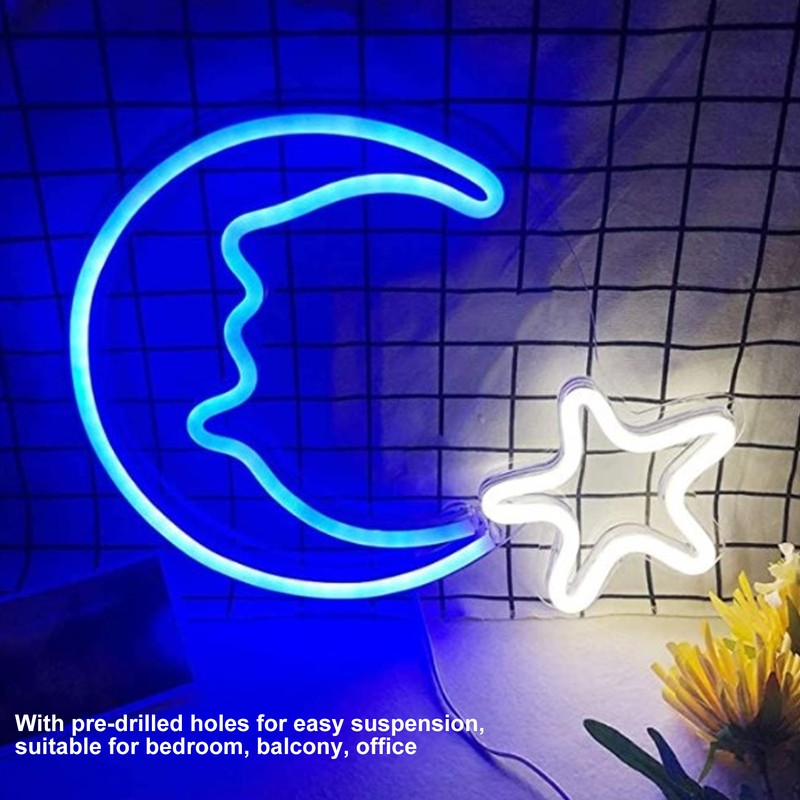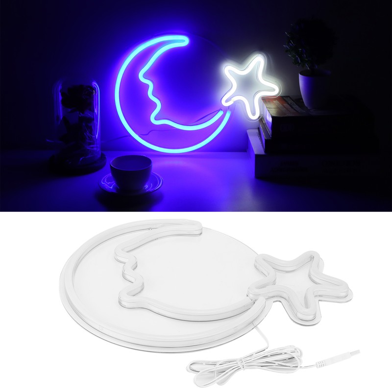 LED Neon Lamp USB Moon Star Pattern Sign Light Home Bedroom Christmas Party Decoration