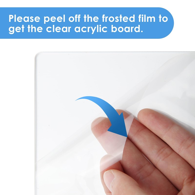 - PREMIUM CHIC DESIGN: Our modern, clear dry-erase board measures 7.87"W x 11.81"H and is a nice change-up from boring noticeboard designs. This clear noticeboard is made from 3mm thick high-quality acrylic. We come with a dry wipe to help you clean stains better. Use it with alcohol for better ~This amazing noteboard is a cute gift, transparent fashionable looks add an advanced and texture impression, making it a focal point of your house.