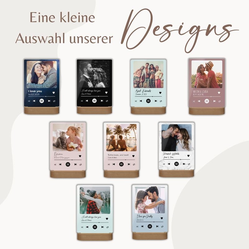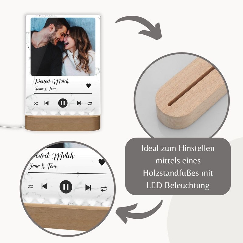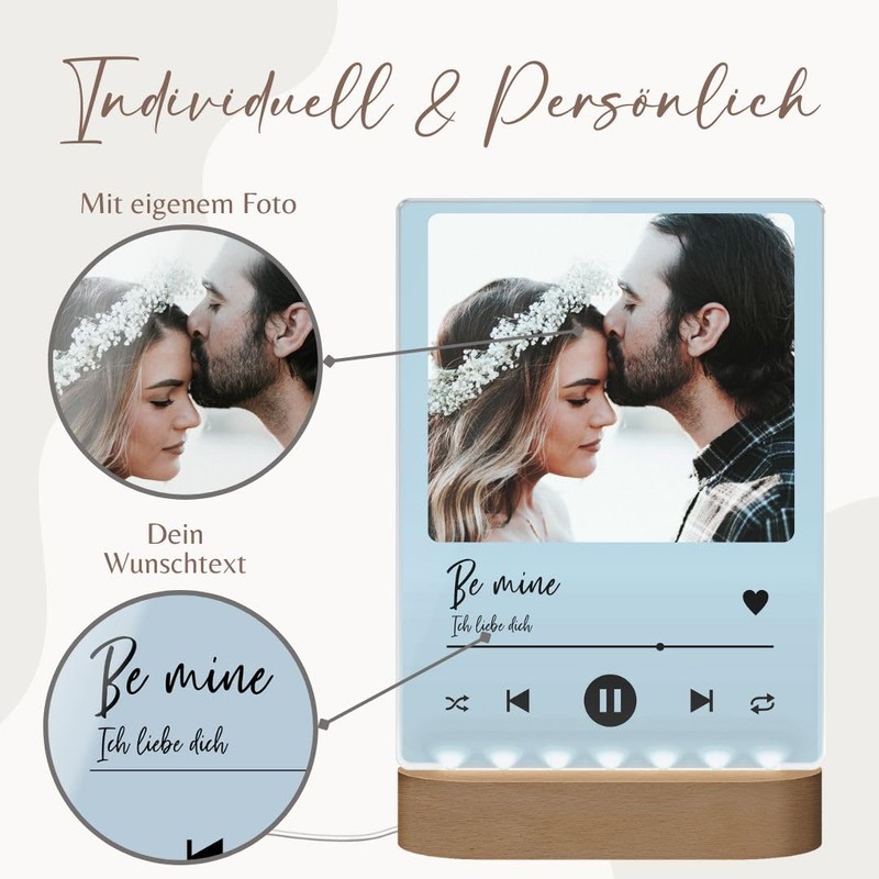 Combine your most beautiful picture with your favourite song and create a personal LED photo picture in a trendy song cover design. The interplay of music and image creates a unique keepsake full of personality.