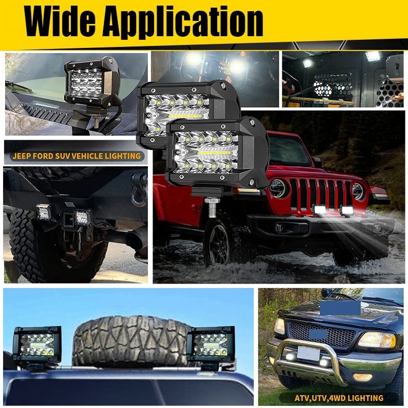 - [COMBO BEAM]:Spot and flood combo Beam integrated in a led cube lights for optimal light spread and further distance illumination.The combo is ideal as off road/driving lights,as you need to see both ahead and around you while driving.