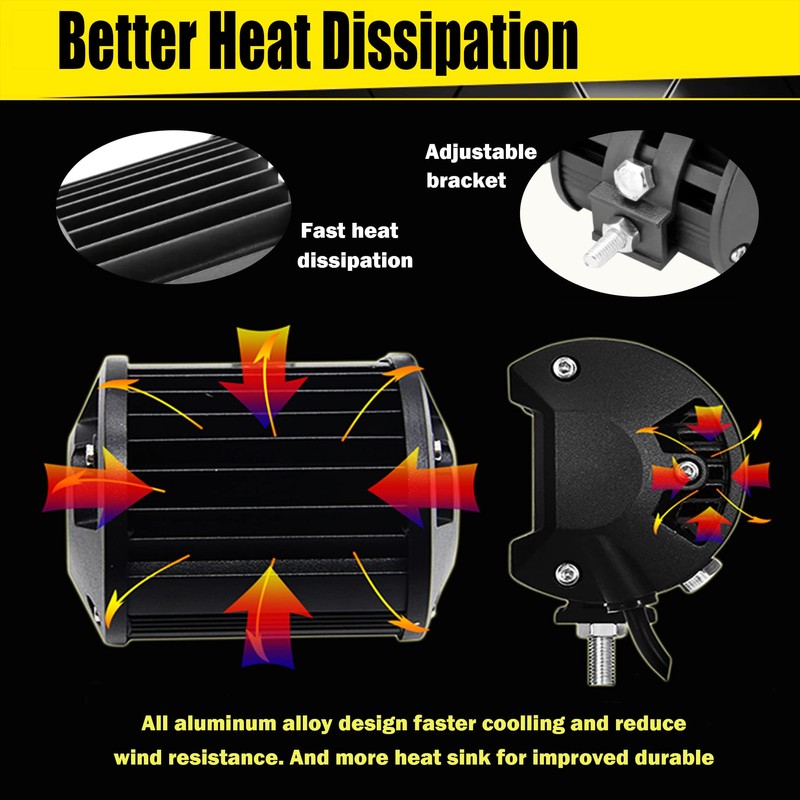 - [DURABLE AND BETTER HEAT DISSIPATION]: Special designed 6063 Aluminum profile with Thermal grease can improve the heat dissipation ability make it more durable.These features enhance the lifespan of off road led lights up to 50,000 Hrs. Providing reliable performance even in the most challenging environments.