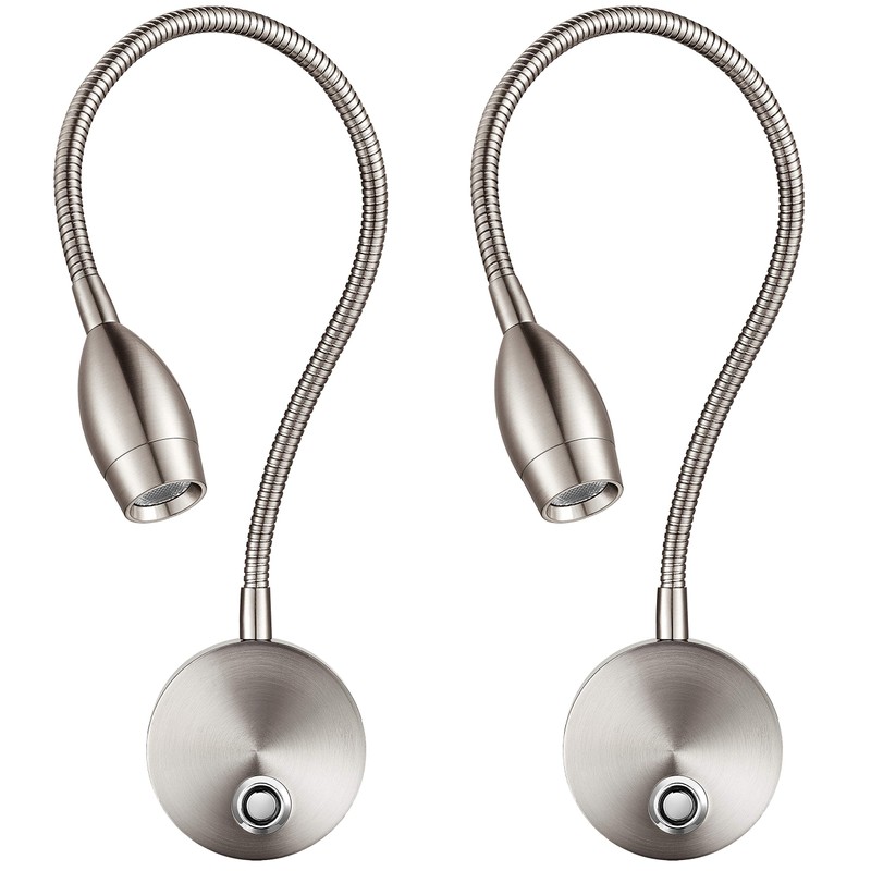 LED Reading Lights,Wall Moount Lamp with Flexible Gooseneck,Touch Dimmable Switch,3 Color Modes,10 Brightness Levels,Bedside Night Light for Bed,Headboard,Desk,Aluminum Brushed Nickel Finish,2 Pack