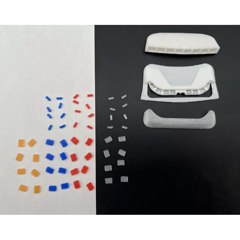 Comes with 56 lenses for the front unit and the back unit, in amber, clear, blue, and red, to make your own color arrangement.