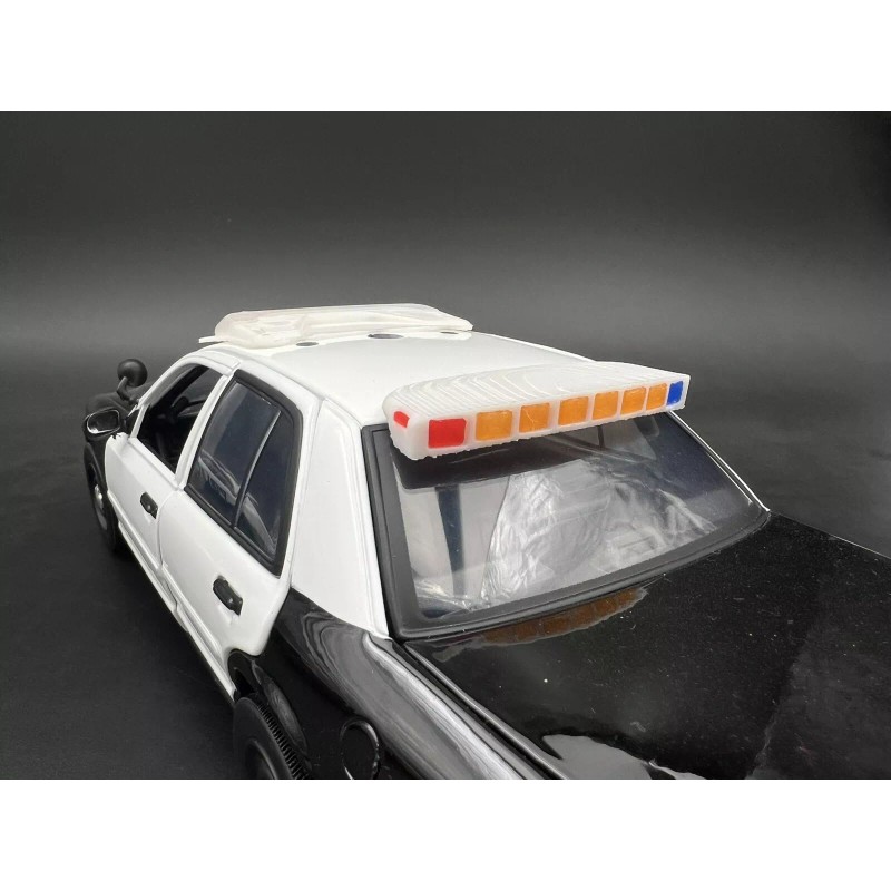 Correct number of housings just like the life sized lightbars. For 1/18 scale Model Police Cars. Cars for size reference only, NOT included.