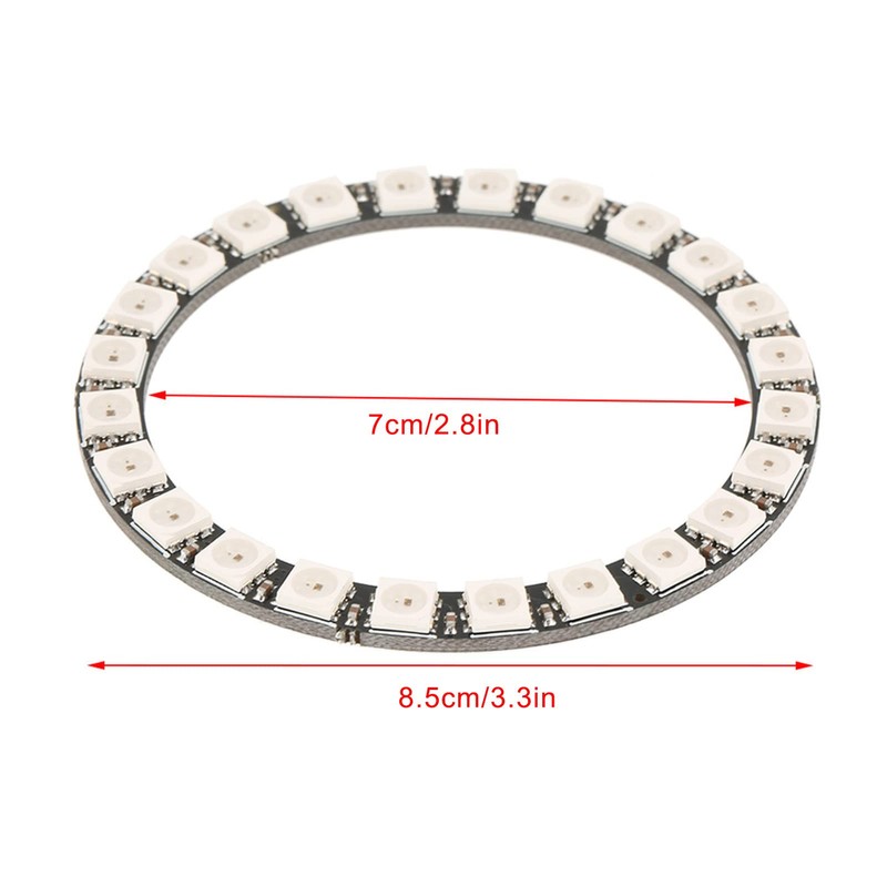 - Super bright 24-bit: the super bright 24-bit smart LEDs are arranged in a circle with an outer diameter of 85 mm (3.35 inches). These rings are "linkable" - connect the output pin of one to the input pin of the other