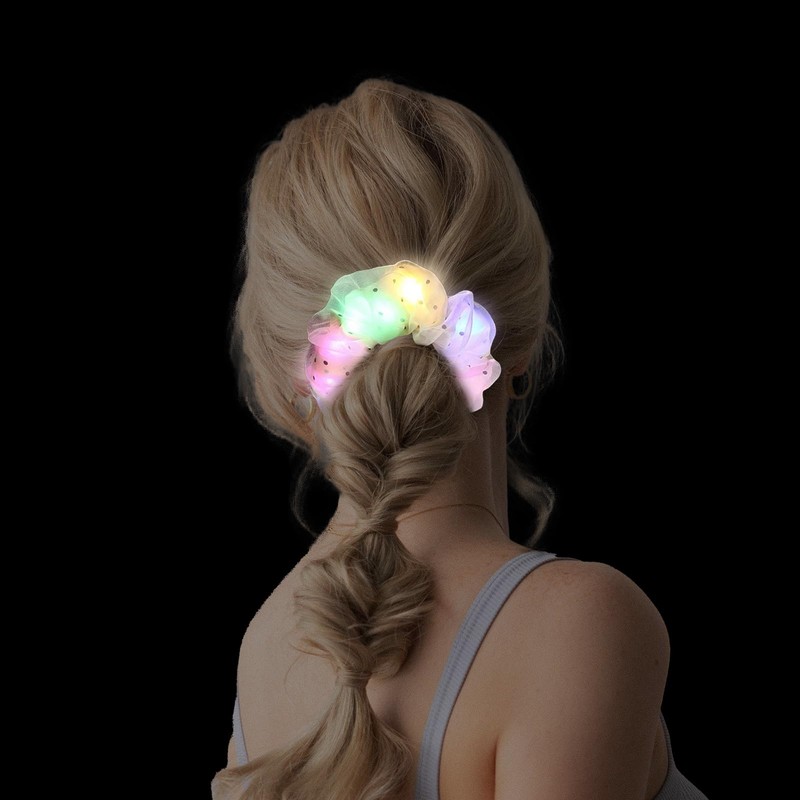 - Great elasticity: The light up scrunchies have great stretchy ability,you can wrap around your hair 2 or 4 time according to different hair thickness, suitable for various hairstyles.They are perfect for neon party, glow party, Halloween, Christmas Party.