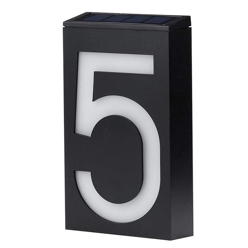 LED Solar House Number Light doorplate Door Address Light Address Sign LED Lighted Up Outdoor Plaque for Home(number 5)