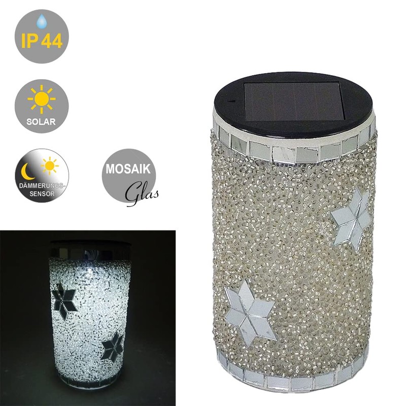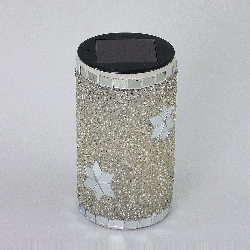 LED Solar Lantern Perla with 2 x Charming Beautiful Mosaic Glass Silver/White