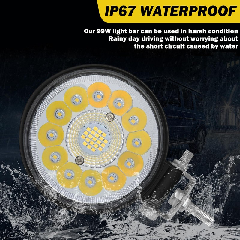 - Extra Thick Heat Sinks - Our 99W truck led light features a rugged die-cast aluminum housing and thick heat sink substrate that increases the surface area for heat dissipation and extends the life of led pod light to 50,000 hours.