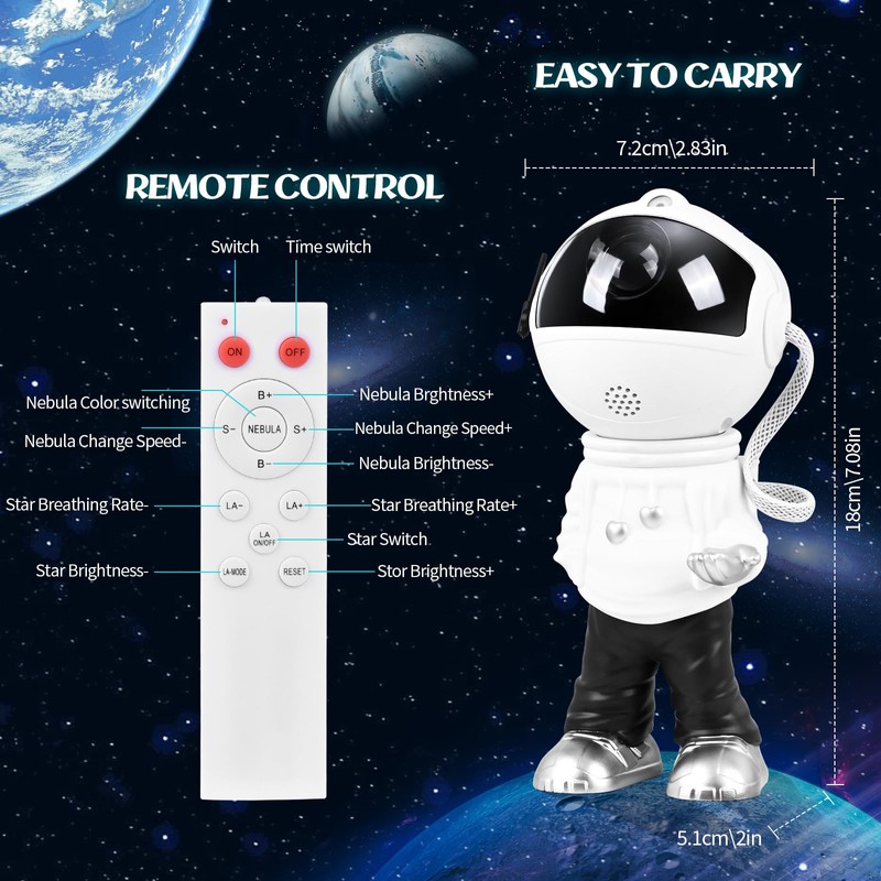 360 DEGREE ROTATION: This star projector is designed to look like an astronaut. The astronaut head is magnetically connected to the housing, so you can easily adjust the projection angle of the nebula.