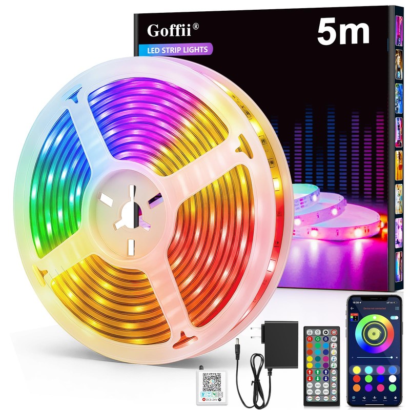 LED Strip 5m, LED Streifen Bluetooth RGB Led Band Selbstklebend mit Fernbedienung und APP. Musik Sync, Timer-Einstellung Dimmbar Led Stripes Lichterkette für Zimmer Partei deko