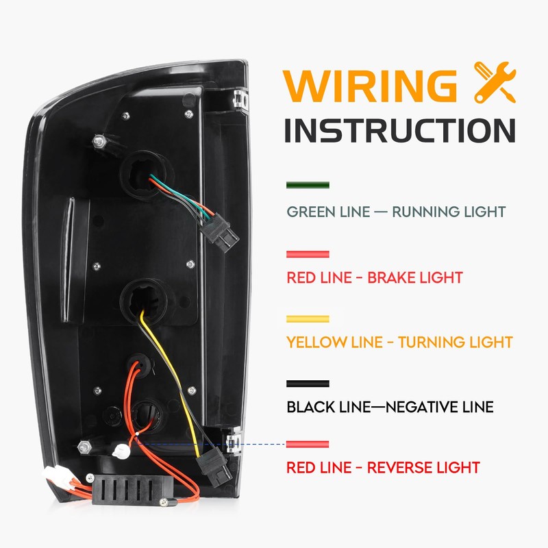 - ALL-IN-ONE: LED running light, brake light, turn signal light, reverse light (full LED, no extra bulbs needed).