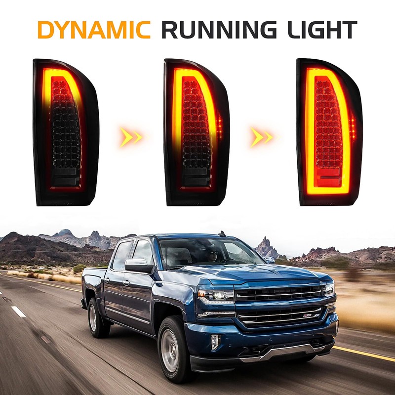 LED Tail Light Fit for Toyota Tacoma 2016-2023, Taillight Assembly Replacement Left + Right Pair with Start-Up Dynamic Running Light, Smoke Lens