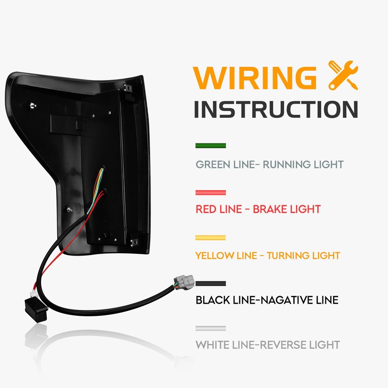 - ALL-IN-ONE Taillights Assembly: LED running light, brake light, turn signal light, reverse light (full LED, no extra bulbs needed).