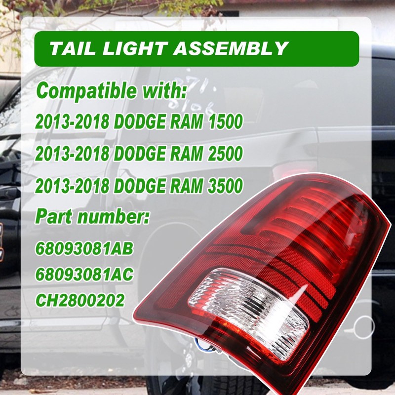 Lochnchn LED Tail Lights Compatible With 2013-2018 Dodge Ram 1500 2500 3500 Driver and Passenger Side Taillights Replace 68093081AB, 68093081AC, CH2800202