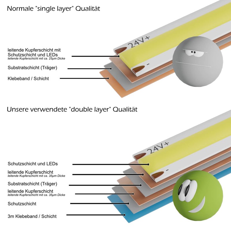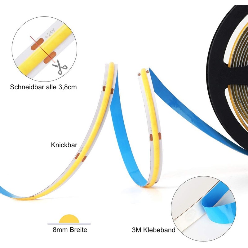 - COB (Chip on Board) LED Stripe with 24 V 10 W/m 320 LED/m CRI>90 Insgesmat 1600 LED on 5 m