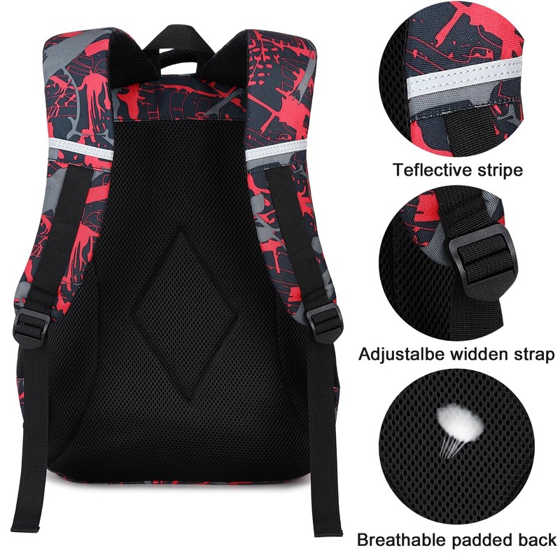 LEDAOU Backpack for Teen Boys School Bags Kids Bookbags Set School Backpack with Lunch Box and Pencil Case (Graffiti Red)