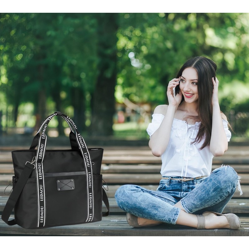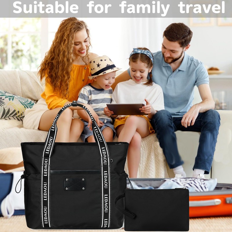 LEDAOU Large Tote Bag for Women with Zipper Travel Carry on Bag Laptop Handbag Top Handle Handbag for Travel Work (Black)