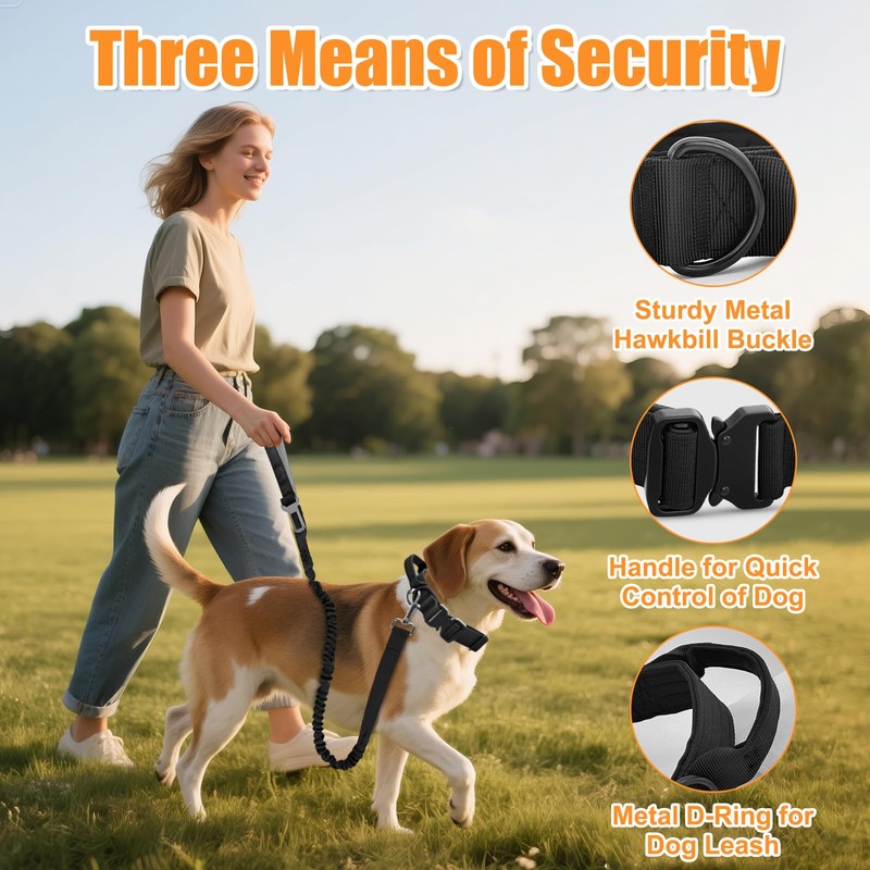 - 【Comfortable Handle & Eagle-Claw Buckle】The strong basic military dog collars include a reinforced handle for secure control during walks or training, allowing quick adjustments to manage pulling. Its heavy duty dog collar design features an eagle-claw metal buckle for instant release while preventing accidental openings, ensuring safety without compromising convenience. The durable pet collar also has an integrated sturdy D-ring for easy attachment of a leash or lead.