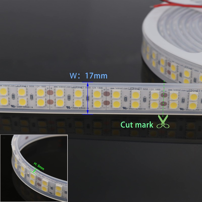 - Super Bright SMD 5050 LED Strips: Double row high density design 180 LEDs/M, 900 LEDs/5 meters.6500K White,high-quality SMD 5050 for superb lighting effect.