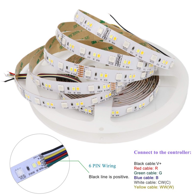 - Not include power supply and controller, you need purchase them. DC24V power supply (ASIN: B00OLYAGSC), wife controller (ASIN: B07HK9G478), or controller (ASIN: B082D5NM75) for the strip. Pacakeg included: 1pc RGB W WW LED strip