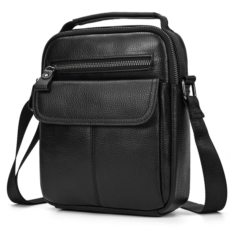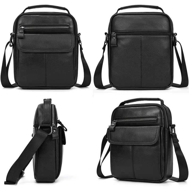 Leder Umhängetasche Herren Schultertasche Vintage Männer Tasche Crossbody Bag Herrentasche zum Umhängen Ledertasche mit Abnehmbarem Gurt für Business Arbeit Reise, 9509 Schwarz