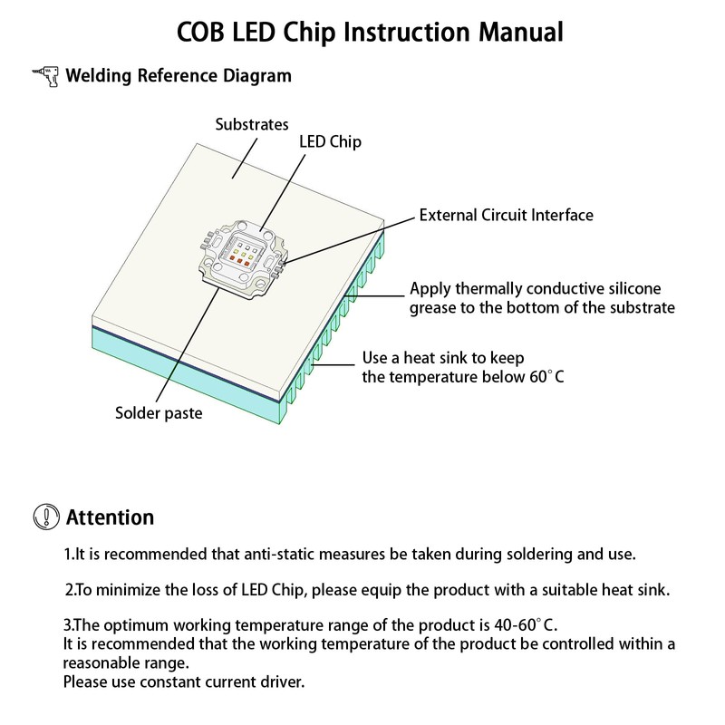 - The optimum operating temperature range for the product is 40-60°C (104-140°F). It is recommended that the product be equipped with a reasonable heat sink. A constant current driver is recommended