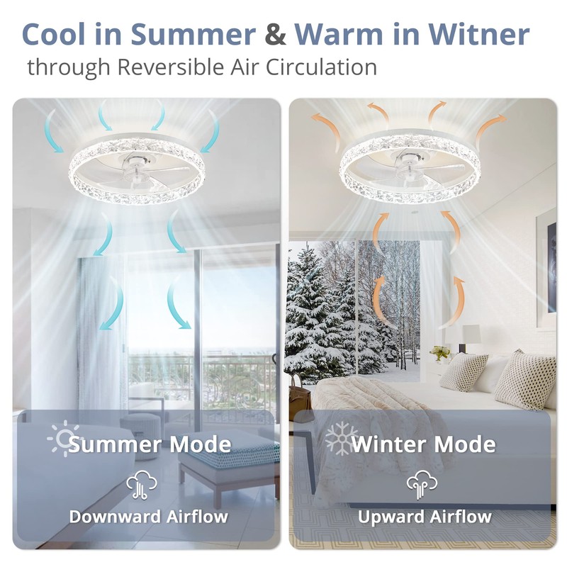 - đăReversible Motor And Quiet Fană- Our white ceiling fan provides 2 airflow modes: It runs downdraft cool airflow during summer and updraft airflow during winter to aid in rotating warm air, promoting air circulation and saving energy.The pure copper motor runs smoothly, provides strong wind power, and low noise design creates a comfortable living environment, and improves the quality of sleep.