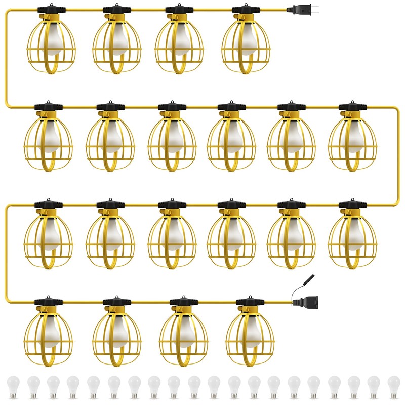 - 【Linkable Design & Wide Application】 - Our light is linkable, seamlessly connect up to 4 sets (80 bulbs), ideal for attics, garages, unfinished construction and jobsites where temporary lighting is needed for a wide area.