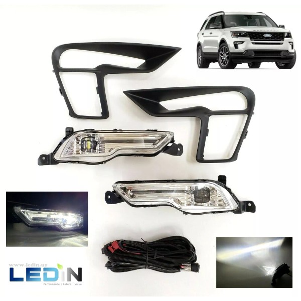 LEDIN LED Clear Fog Lights Kit For 2018-2019 Ford Explorer Bezel Switch Wiring Harness