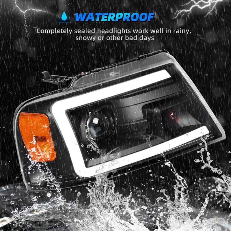 LEDKINGDOMUS LED DRL Projector Headlights For 2004-2008 Ford F-150 /2006-2008 Lincoln Mark LT