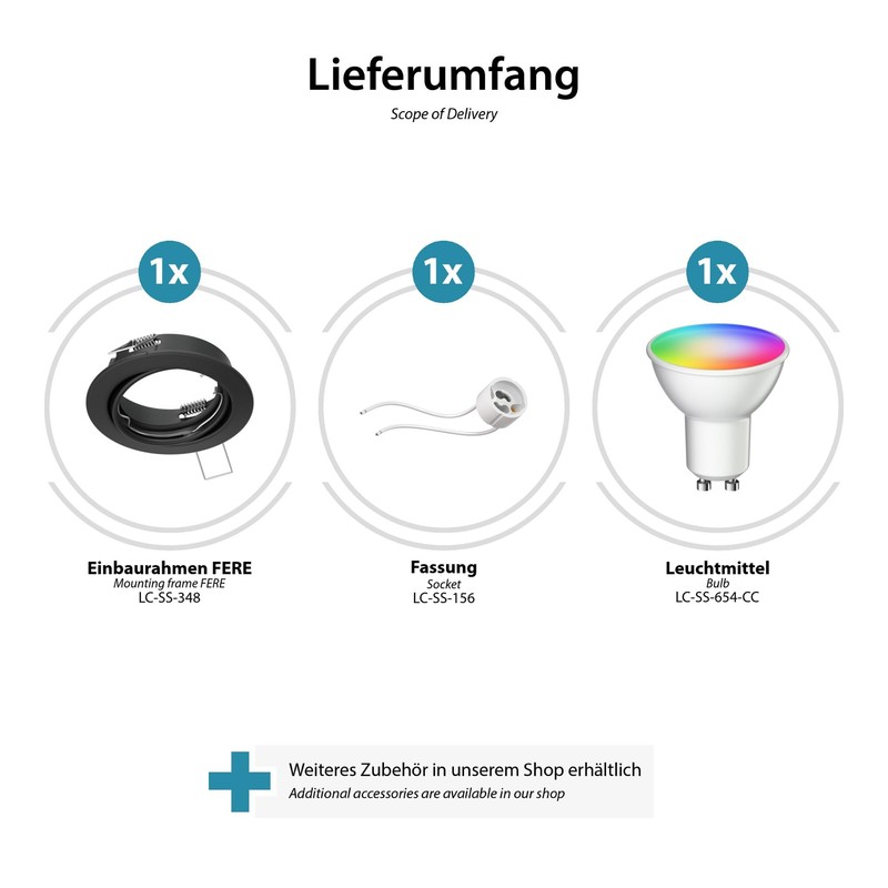 5 x installation frame FERE - LC-SS-348, 5 x socket - LC-SS-156, 5 x light source - LC-SS-654-CC