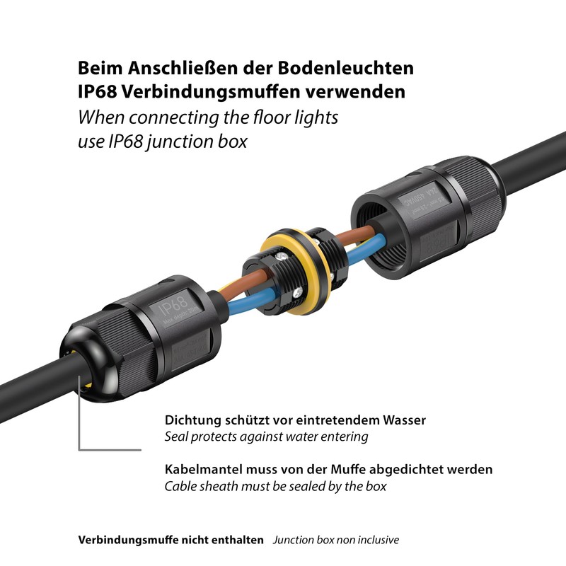 - [IP67 protection rating] - The in-ground light is the perfect solution for your outdoor lighting. The robust plastic housing protects the LED paving stone from temporary immersion in water and is completely dustproof. This means that it is optimally protected against the effects of the weather in different seasons. Please note that the connection cable must be connected to an IP68 connection sleeve to ensure tightness.