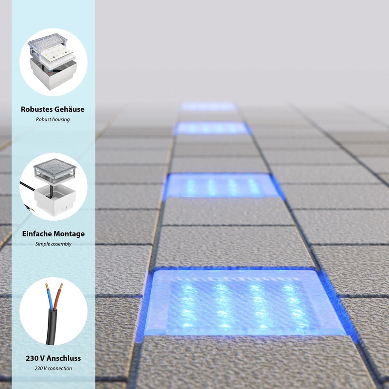 ledscom.de LED Paving Stone recessed Floor Light CUS for Outdoor, IP67, Angular, 10 x 10cm, Blue