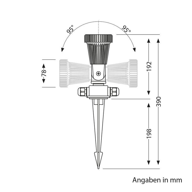 With the ground spike you can attach our garden light to the ground. The outdoor light can be pulled out of the ground again and again and anchored elsewhere.