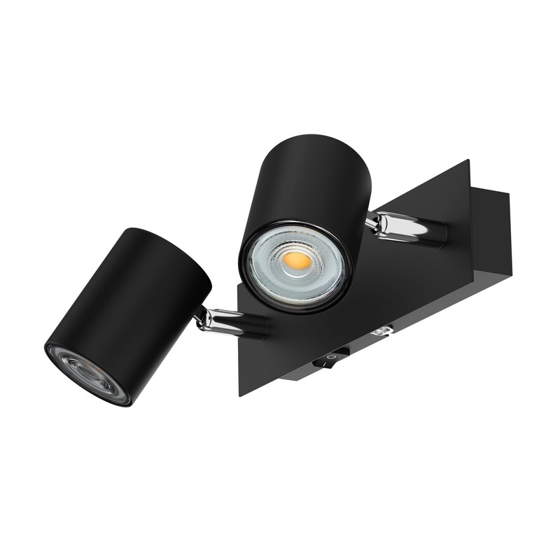 ledscom.de WAIKA Wall Spotlight with Switch, Matt Black, Includes GU10 LED (Warm White, 7.6 W, 1103 lm Each, 33°)