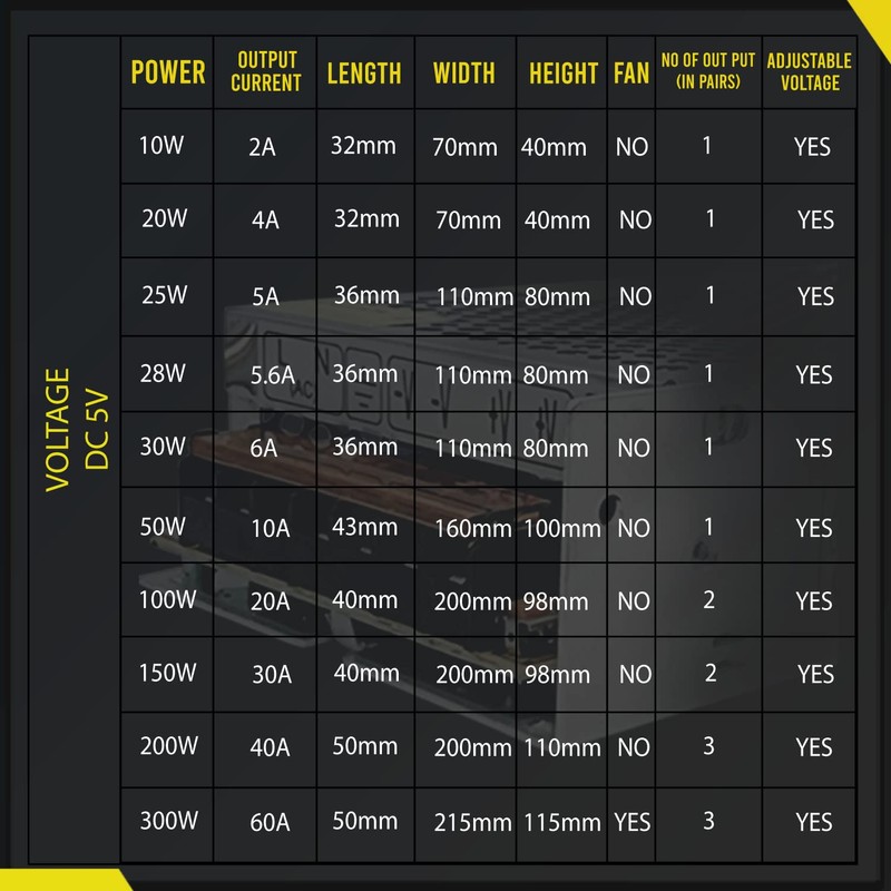 - Design: The DC5V power supply provides 150W and 30A power and is compatible with input voltages from 110V to 220V. It meets your requirements.