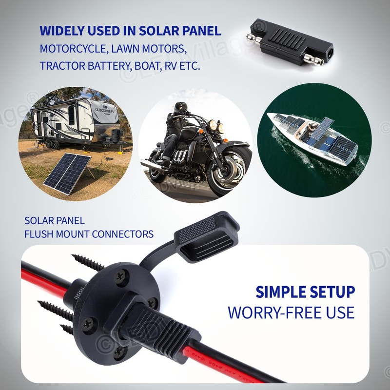 - 🌞 Widely used: Fits for most of the SAE socket port, quickly connect or disconnected batteries on different vehicles.There is a wide range of applications in solar panel, motorcycles, lawn motors, tractors, batteries etc.
