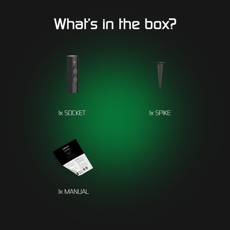 Ledvion - Outdoor Socket with Stake, Includes Sensor, 2 Sockets, Waterproof IP44, 3 Year Warranty